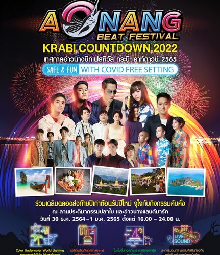 การท่องเที่ยวแห่งประเทศไทย ตอบสนองนโยบายเปิดประเทศตามนโยบายรัฐบาล โดยการร่วมสนับสนุนการจัดงานอ่าวนาง บีท เฟสติวัล กระบี่ เคาท์ดาวน์ 2565 ร่วมกับสำนักงานจังหวัดกระบี่ หน่วยงานภาครัฐและเอกชนในจังหวัดกระบี่ เพื่อช่วยส่งเสริมการท่องเที่ยวและสร้างสีสันในช่วงเทศกาลส่งท้ายปีเก่า ต้อนรับปีใหม่ 2565 กระตุ้นให้เกิดการใช้จ่ายและก่อให้เกิดการหมุนเวียนทางเศรษฐกิจสร้างความเชื่อมั่นด้านความปลอดภัย และภาพลักษณ์ที่ดีให้กับจังหวัดกระบี่ ซึ่งเป็นการจัดงานภายใต้มาตรการ Safe & Fun with Covid Free Setting โดยสาธารณสุขจังหวัดกระบี่ และโรงพยาบาลวัฒนแพทย์ อ่าวนาง โดยผู้เข้าชมงานต้องปฏิบัติตัวเคร่งครัด สวมหน้ากากอนามัย ล้างมือด้วยเจลแอลกอฮอล์ มีการวัดไข้ และเว้นระยะห่าง ตลอดการร่วมงานตั้งแต่ทางเข้างาน และผู้เข้างานต้องฉีดวัคซีนครบ 2 เข็ม และ มีผลตรวจ ATK หรือ RT-PCR ภายใน 72 ชั่วโมงเท่านั้นจึงจะสามารถร่วมงานได้