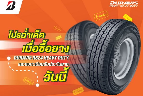 ซื้อยาง Bridgestone DURAVIS R624 HEAVY DUTY 2 เส้นขึ้นไป รับ Bar B Q Plaza E-Voucher มูลค่า 300 บาท