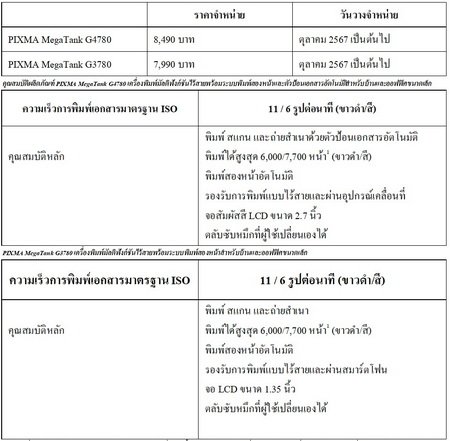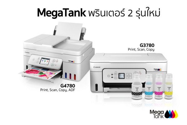 แคนนอน เดินหน้าขยายไลน์อัปเครื่องพิมพ์แท็งก์หมึกเติมได้ ล่าสุดเปิดตัว MegaTank G3780 และ G4780 สองเครื่องพิมพ์รุ่นใหม่ที่มาพร้อมกับระบบการพิมพ์สองหน้าอัตโนมัติ ซึ่งช่วยเพิ่มประสิทธิภาพการทำงานสำหรับ  โฮมออฟฟิศและธุรกิจขนาดเล็กด้วยการลดเวลาการพิมพ์เอกสารจำนวนมาก นอกจากนี้ MegaTank G4780 ยังมีตัวป้อนเอกสารอัตโนมัติที่ช่วยแปลงเอกสารเป็นไฟล์ดิจิทัลได้อย่างรวดเร็ว จึงตอบโจทย์องค์กรขนาดเล็กที่ต้องการจัดเก็บเอกสาร