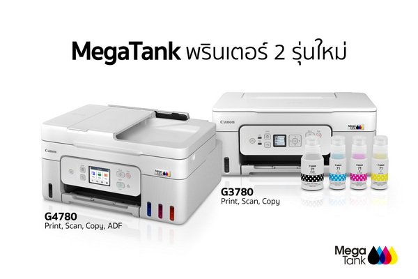 แคนนอน เดินหน้าขยายไลน์อัปเครื่องพิมพ์แท็งก์หมึกเติมได้ ล่าสุดเปิดตัว MegaTank G3780 และ G4780 สองเครื่องพิมพ์รุ่นใหม่ที่มาพร้อมกับระบบการพิมพ์สองหน้าอัตโนมัติ ซึ่งช่วยเพิ่มประสิทธิภาพการทำงานสำหรับ  โฮมออฟฟิศและธุรกิจขนาดเล็กด้วยการลดเวลาการพิมพ์เอกสารจำนวนมาก นอกจากนี้ MegaTank G4780 ยังมีตัวป้อนเอกสารอัตโนมัติที่ช่วยแปลงเอกสารเป็นไฟล์ดิจิทัลได้อย่างรวดเร็ว จึงตอบโจทย์องค์กรขนาดเล็กที่ต้องการจัดเก็บเอกสาร