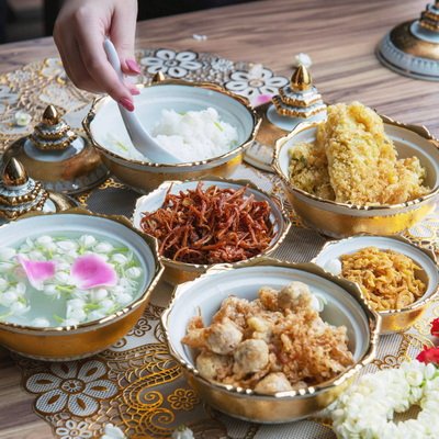 “ข้าวแช่” อาหารคลายร้อนที่เปี่ยมด้วยเอกลักษณ์ โดดเด่นด้วยข้าวหอมลอยในน้ำเย็นอบกลิ่นดอกมะลิ รับประทานคู่กับเครื่องเคียงรสเลิศที่ปรุงอย่างพิถีพิถัน อาทิ ลูกกะปิทอด พริกหยวกสอดไส้หมูสับ หมูหวานฝอย และไชโป๊วหวาน ทุกคำให้ความสดชื่น หอมละมุน และช่วยดับกระหายในวันที่อากาศร้อนอย่างลงตัว พร้อมเติมเต็มประสบการณ์ความอร่อยไปไลน์อาหารนานาชาติหลากหลายรายการอีกด้วย