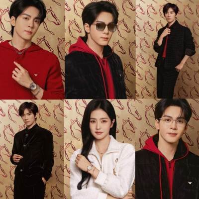 In the campaign, Zeng Shunxi wears the Emporio Armani 2026 Chinese New Year men’s automatic watch, designed with an openwork dial and a brown leather strap for a refined look. He pairs it with a gunmetal necklace and bracelet featuring a double-layered chain and zircon details for a contemporary touch. For eyewear, Zeng Shunxi is seen in glasses and sunglasses that balance style with practicality.