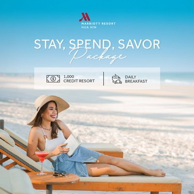 หัวหิน แมริออท รีสอร์ท และ สปา (Hua Hin Marriott Resort & Spa) รีสอร์ตระดับห้าดาวริมชายหาดหัวหิน เปิดตัวแพ็กเกจ “Stay, Spend, Savor” เพื่อมอบประสบการณ์การพักผ่อนช่วงวันหยุด ที่คุ้มค่ามากยิ่งขึ้นให้กับสมาชิกแมริออท บอนวอย มาสัมผัสช่วงเวลาแห่งการผ่อนคลายท่ามกลางบรรยากาศริมทะเล