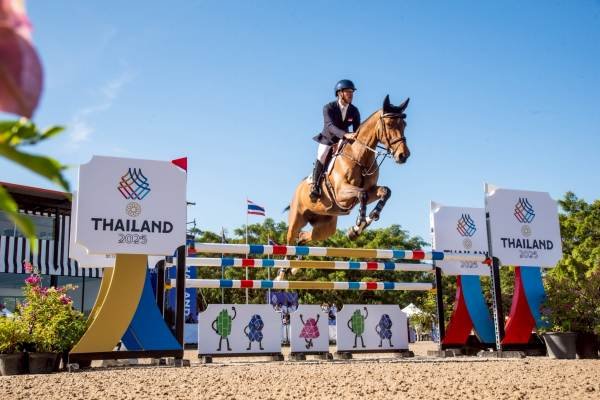 พัทยา จังหวัดชลบุรี : การแข่งขันกีฬาขี่ม้ากระโดดข้ามเครื่องกีดขวางประเภททีม (Jumping Team Competition) ในมหกรรมกีฬา ซีเกมส์ ครั้งที่ 33 ได้สิ้นสุดลงแล้วในวันนี้ ณ สนามไทยโปโลพัทยา โดย การสนับสนุนจาก บี.กริม โดยมีทีมกีฬาขี่ม้าจาก 5 ประเทศเข้าร่วมการแข่งขันอย่างเข้มข้น ได้แก่ ไทย มาเลเซีย ฟิลิปปินส์ เมียนมาร์ และ อินโดนีเซีย