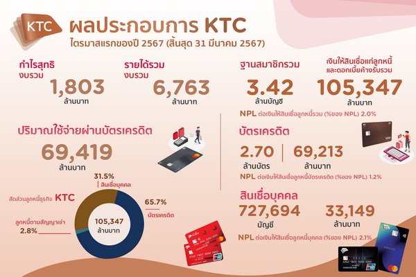 KTC announced a consolidated profit for Q1/2024 of 1,803 million baht, continually focusing on asset quality at an appropriate risk level.
