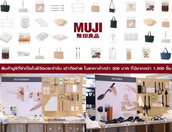 มูจิ ประเทศไทย (MUJI) เดินหน้าตอกย้ำสร้างภาพลักษณ์ของ MUJI ที่ไม่ได้เป็นเพียงแค่แบรนด์ ที่ขายสินค้าในชีวิตประจำวัน แต่เป็นคอมมูนิตี้ที่เชื่อมโยงและเข้าถึงทุกคน ชูจุดเด่นด้านการเข้าถึงผู้บริโภคอย่างรอบด้าน ครอบคลุมในทุกมิติ ผ่านการนำเสนอสินค้าคุณภาพมาตรฐาน MUJI ราคาต่ำกว่า 300 บาท มากถึง 53% หรือประมาณ 1,500 รายการ จากสินค้ารวมทั้งหมดกว่า 3,000 รายการ ครอบคลุมทุกหมวดหมู่สินค้าที่ใช้ได้ในชีวิตประจำวันของทุกคน ทุกไลฟ์สไตล์ เพื่อให้เข้าถึงผู้บริโภคทุกคนอย่างรอบด้าน ทั้งฟังก์ชั่นตามความต้องการในการใช้งาน ตามขนาดของแต่ละกลุ่มเป้าหมาย และทุกการจับจ่ายของผู้บริโภค พร้อมเดินหน้าสร้างความตระหนักรู้เกี่ยวกับแนวคิดสินค้า MUJI ที่จำเป็นในชีวิตประจำวัน ในราคาต่ำกว่า 300 บาท ตอบความต้องการและงบประมาณของลูกค้า เพื่อสร้างประสบการณ์ใหม่ในการจับจ่ายประจำวัน และตอกย้ำว่าสินค้า MUJI ที่เป็นของใช้จำเป็นในชีวิตประจำวัน มีคุณภาพดีและราคาเข้าถึงได้ ที่ MUJI ทุกสาขา ภายใต้คอนเซ็ปต์ “MUJI เติมเต็มทุกความต้องการที่จำเป็นในชีวิตประจำวัน ด้วยสินค้าคุณภาพ ราคาเข้าถึง”