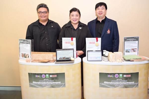 – ผลงานเรื่อง “เชลล์เฮมพ์คอมโพสิต: วัสดุคอมโพสิตมวลเบาจากแกนกัญชงผสมซีเมนต์และเปลือกหอย” (รางวัลเหรียญทอง)
