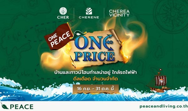PEACE ส่งโปรโมชันดีลเดือดแห่งปี “ONE PEACE ONE PRICE” ยกทัพบ้านคุณภาพ 5 โครงการ 5 ทำเลใกล้รถไฟฟ้า ราคาดีกับ Special Package สุดคุ้มทั้งราคาและของแถมที่ให้มากที่สุดเท่าที่เคยมีมา พร้อมให้เป็นเจ้าของตั้งแต่วันนี้ – 31 ตุลาคมนี้ เท่านั้น