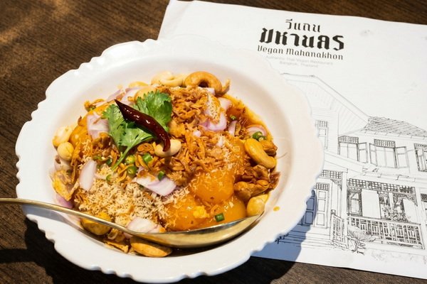ร่วมสัมผัสบรรยากาศบ้านโบราณสุดคลาสสิคของ “วีแกนมหานคร” ชิมรสอาหารไทยเพื่อสุขภาพ ต้นตำรับชาววัง ด้วยเอกลักษณ์ความเป็นไทยแท้ พร้อมรสชาติที่อร่อยถูกปากคนไทย และชาวต่างชาติ โดยที่ไม่ลืมรังสรรค์ศิลปะในการจัดจานให้มีเรื่องราวเพิ่มเสน่ห์ความเป็นไทย กับเมนูคาว-หวาน อาหารไทยสไตล์วีแกน (plant-based) แท้ 100% ในบรรยากาศบ้านไม้โบราณ ถือเป็นที่เดียว และที่แรกของประเทศไทย กับเมนูเด็ดที่ห้ามพลาดหน้าร้อนนี้ ได้แก่ ข้าวแช่ 120 ปี (ตามฤดูกาล) เสิร์ฟมาในสำรับพร้อมเครื่องเคียง, วีแกนสลิดฟูผัดพริกขิง, ข้าวซอย, ผัดไทยสูตรโบราณ, วีแกนน้ำพริกลงเรือ, วีแกนมัสมั่นกลอย, หมูสามชั้นทอดน้ำปลากระเทียมกรอบ ล้างปากด้วยเมนูขนมหวาน เช่น เค้กกลีบลำดวนอบควันเทียน ,แตงโมปลาแห้ง เมนูเรียกน้ำย่อยสดชื่นที่อยากให้ลอง ข้าวตังหน้าตั้ง, ลูกลานในน้ำตาลสด, มะกรูดลอยแก้ว เป็นต้น ที่นี่..ยังมีเมนูอาหารไทยไร้เนื้อสัตว์เพื่อสุขภาพอีกมากมายไว้คอยบริการ