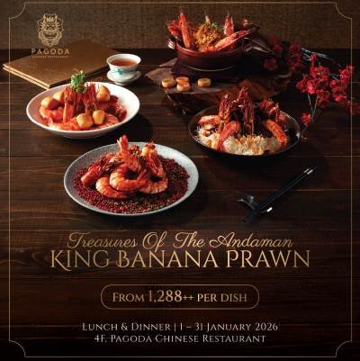 Pagoda Chinese Restaurant, the highly acclaimed Cantonese dining destination at Bangkok Marriott Marquis Queen’s Park, invites diners to discover the sweet and succulent flavor of king banana prawns – freshly caught in the pure waters of Krabi and presented in four delectable dishes.