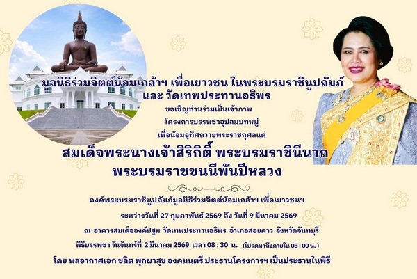 โดยพลอากาศเอก ชลิต พุกผาสุข องคมนตรี จะไปเป็นประธานพิธีฯ วันจันทร์ที่ ๒ มีนาคม ๒๕๖๙ เวลา ๐๘.๓๐ น. ณ อาคารพระสมเด็จองค์ปฐม วัดเทพประทาน อำเภอสอยดาว จังหวัดจันทบุรี และ นายอนุทิน ชาญวีรกุล นายกรัฐมนตรี และรัฐมนตรีว่าการกระทรวงมหาดไทย สนับสนุนให้คณะรัฐมนตรี มีมติให้ข้าราชการ อุปสมบท โดยไม่ถือว่าเป็นวันลา